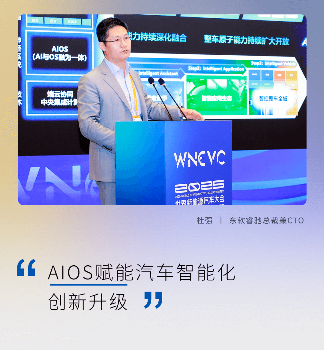 东软睿驰总裁兼CTO杜强受邀出席本次大会,并于“AI赋能汽车软硬件融合创新”专题论坛发表《AIOS赋能智能汽车创新升级》主题演讲,系统阐述AIOS作为赋能车企打造人格化、系统化智能体验的核心引擎,已成为提升整车产品力与品牌价值的重要支撑。东软睿驰NeuSAR OS为AI应用高效开发与场景协同提供系统化支撑,同时通过AI赋能的开发工具显著提升整车软件开发效率,加速车企创新体验落地与量产迭代,助力汽车迈向高价值、创造性的智能化未来。