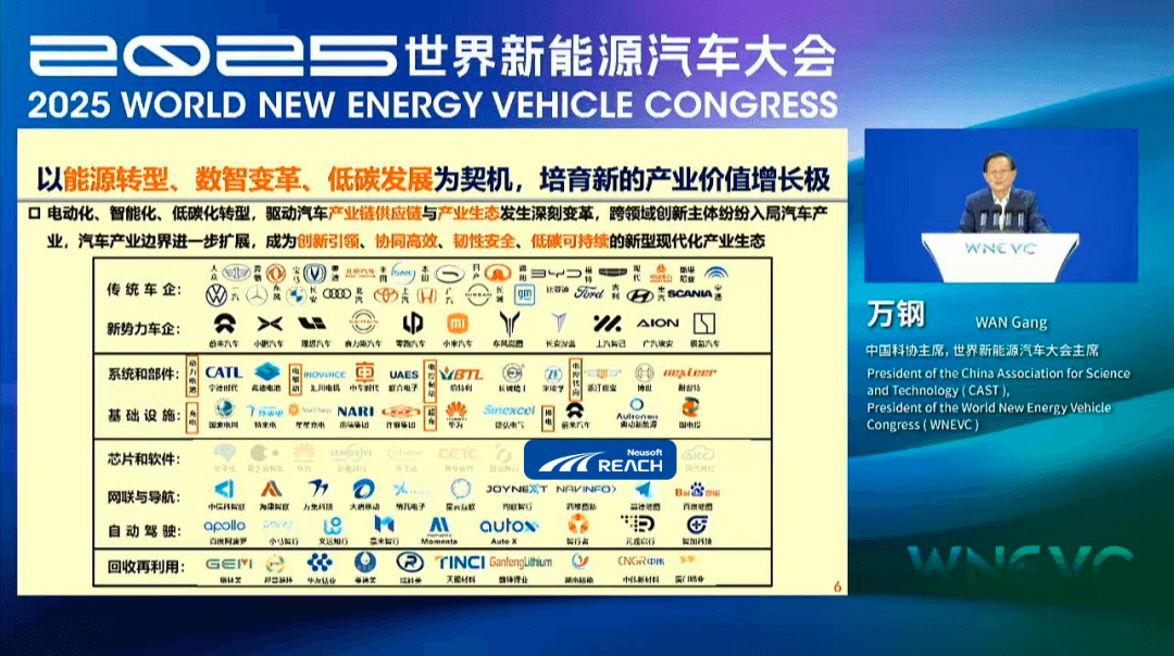 在大会主旨报告中,中国科协主席、世界新能源汽车大会主席万钢指出,汽车产业正经历电动化、智能化、低碳化转型,驱动汽车产业链、供应链及产业生态发生深刻变革。跨领域创新主体纷纷入局,汽车产业边界进一步扩展,形成创新引领、协同高效、韧性安全、低碳可持续的新型现代化产业生态。东软睿驰作为“汽车产业链软件领域的企业代表”,持续发挥在智能汽车软件领域的技术生态优势与产业价值,推动行业创新发展与智能化升级。