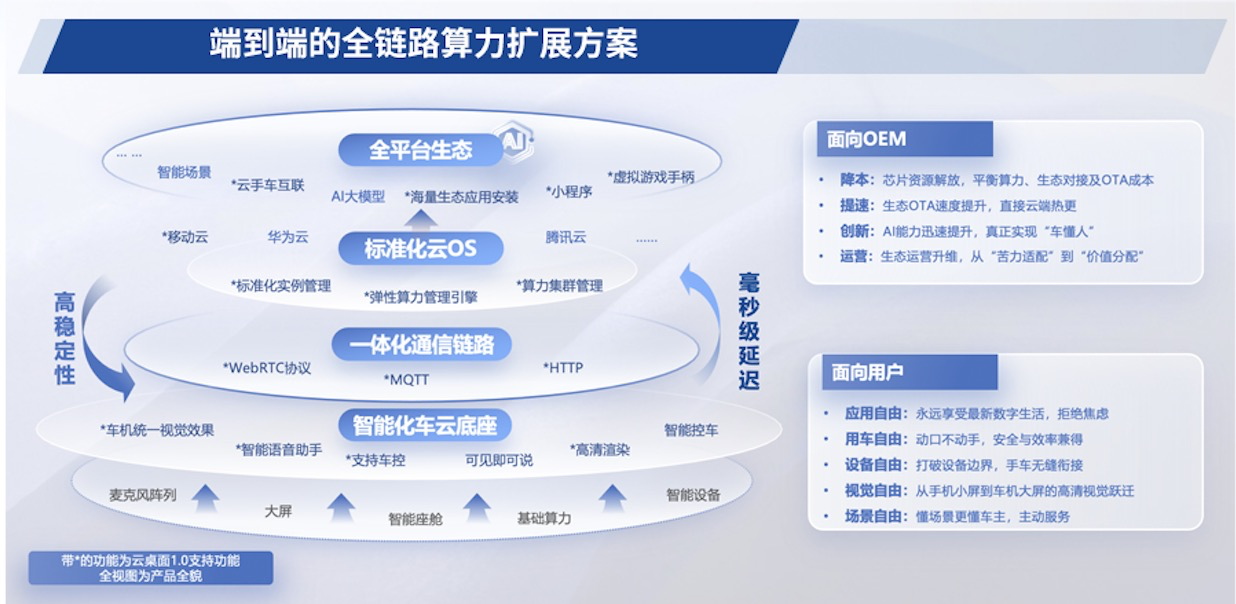 在量产车型演示环节,东软睿驰系统展示了车云协同平台“算力延伸、应用拓展、生态运营”的全链路支持能力,通过云端算力扩展与车端实时计算的高效协同,有效支持各类智能化应用快速部署,打破 “车端算力有限、功能迭代缓慢” 的瓶颈,为车企实现芯片资源解放、成本平衡、云端 OTA 提速、AI 能力升级及运营模式升维的同时,也为用户带来 “应用、用车、设备、视觉、场景” 五大自由体验,助力车企高效落地 “以用户为中心”智能出行生态。
