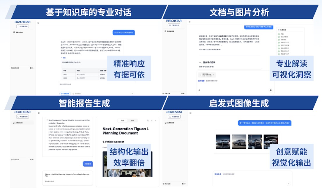 体验日现场还展示了睿驰达最新推出的AI 汽车企划助手,通过自动采集用户与车企多源数据,建立车企专属数据库,用户可基于ChatBox实现信息检索、专业问题答疑及企划辅助等功能,实现数据采集到实际应用的过程;通过智能体技术,简化图表整理、逻辑撰写等流程,按需生成车型企划方案报告,为车企在车型开发与用户体验升级的企划与决策流程提供强有力的产品赋能。