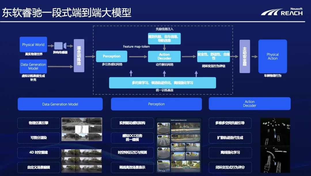 睿驰最新推出全栈自研的一段式端到端大模型,统一实现“观察还原世界”和“指导车辆物理行为”,通过融合多源数据训练与仿真技术,实现从环境感知到行为决策的统一建模,确保智能辅助驾驶量产方案的安全性、舒适性与合规性,并为高阶智能驾驶演进提供技术基础。